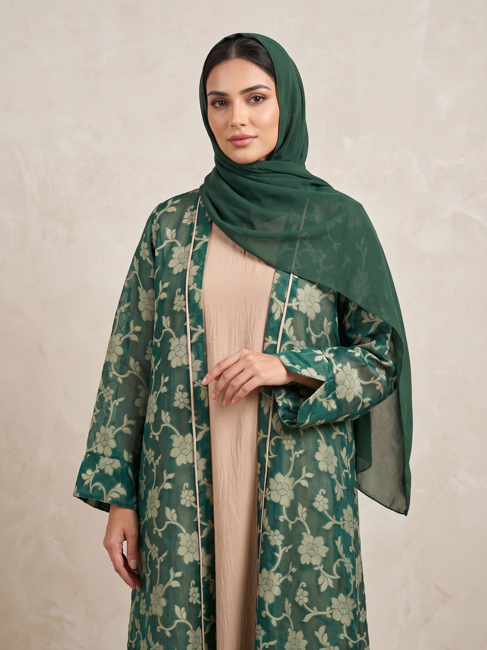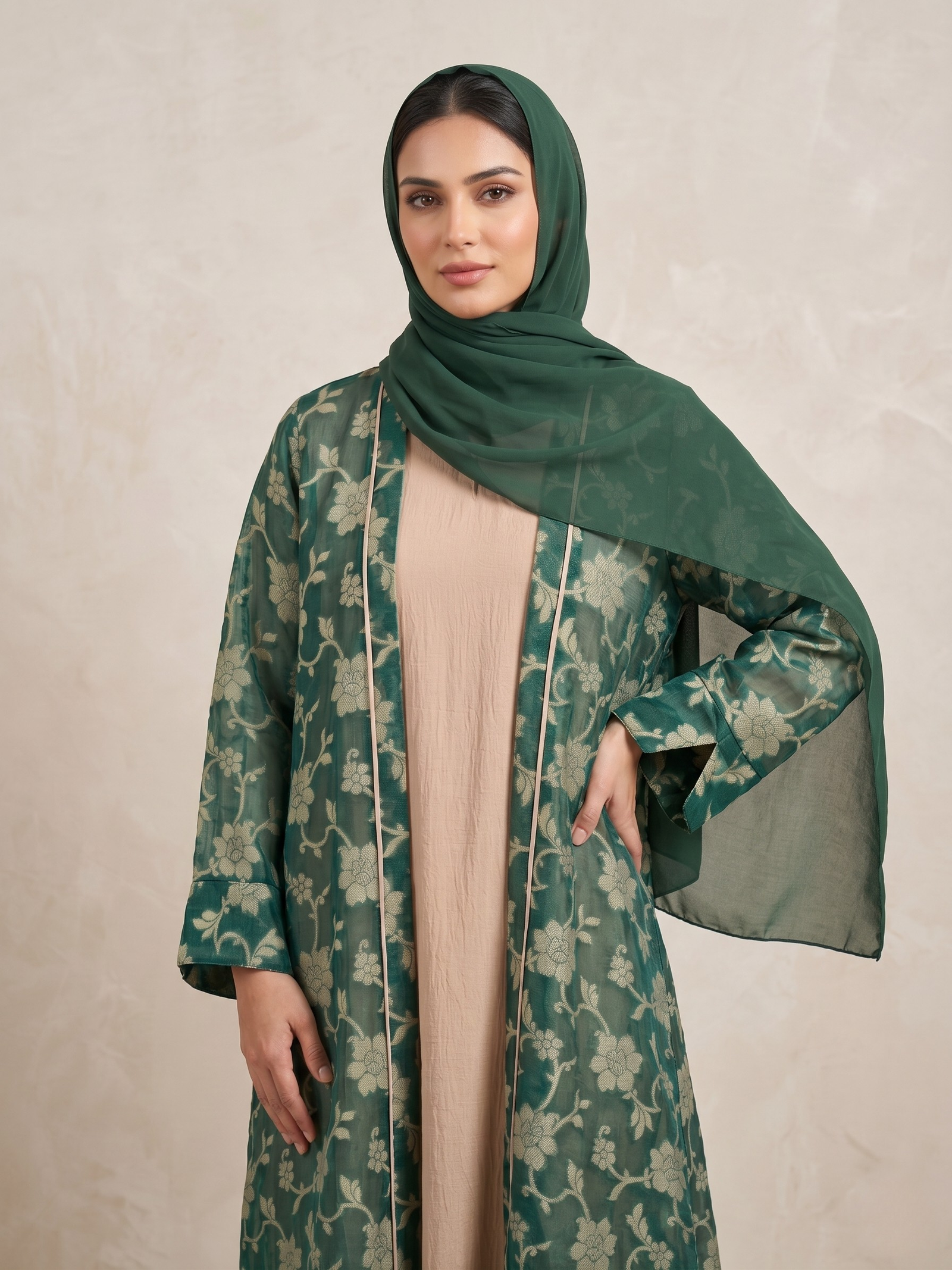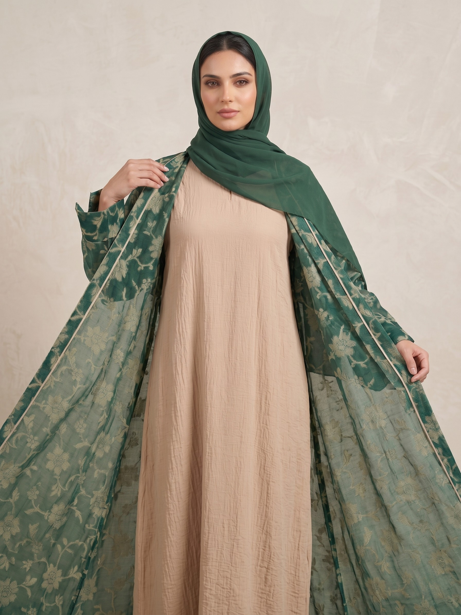 Elevate your wardrobe with this exquisite ensemble. The upper is crafted from premium Banarsi fabric, featuring intricate floral motifs on a deep green canvas for a touch of regal charm. Complementing it is a sleeveless inner made from breathable CEY fabric, providing a smooth, effortless fit. The ultimate choice for a graceful statement.